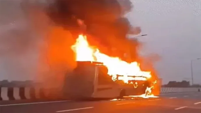 लखनऊ , 15 मई 2025: उत्तर प्रदेश के लखनऊ में किसान पथ पर भीषण हादसा हुआ है। एक बस में अचानक आग लग जाने से दो बच्चों समेत पांच यात्री जिंदा जल गए। यह बस बिहार से दिल्ली जा रही थी। लेकिन लखनऊ पहुंचते ही उसमें अचानक आग लग गई। बस में लगभग 80 लोग सवार थे।
