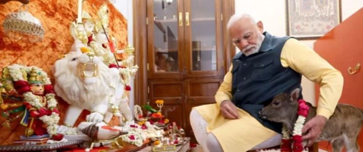 दिल्ली : भारत देश के प्रधानमंत्री नरेंद्र मोदी ने सोशल मीडिया पर वीडियो साझा करते हुए बताया कि उनके आवास में एक नन्हा मेहमान आया है। गौ माता ने बच्चे को जन्म दिया है। पीएम मोदी को उसका नामकरण ‘दीपज्योति’ किया है। पीएम मोदी ने खुशी जाहिर करते हुए कहा कि लोक कल्याण मार्ग पर प्रधानमंत्री आवास परिसर में नए सदस्या का शुभ आगमन हुआ है। प्रधानमंत्री नरेंद्र मोदी ने सोशल मीडिया पर वीडियो साझा करते हुए बताया कि उनके आवास में एक नन्हा मेहमान आया है। गौ माता ने बच्चे को जन्म दिया है। पीएम मोदी को उसका नामकरण ‘दीपज्योति’ किया है। पीएम मोदी ने खुशी जाहिर करते हुए कहा कि लोक कल्याण मार्ग पर प्रधानमंत्री आवास परिसर में नए सदस्या का शुभ आगमन हुआ है।