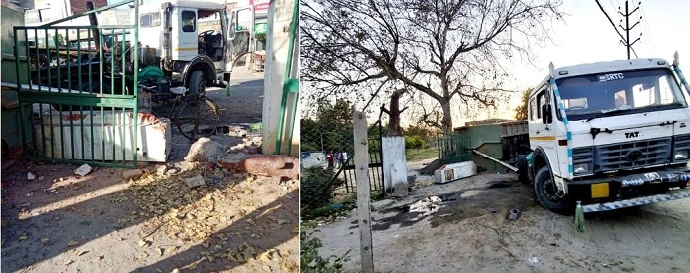 पटियाला, 4 अप्रैल : गत दिवस सूलर पुली के पास एक ओवर लोड टिप्पर रेत उतारने समय बेकाबू हो गया और वह बीड़ खेड़ी गुजरां के पार्क का गेट पर फेंसी ड्रिलिंग को तोड़ता हुआ पब्लिक पार्क में पलट गया। जिस समय पर टिप्पर पार्क में घुसा उस समय लोग पार्क में घूम रहे थे, यदि कोई भी व्यक्ति गेट के नजदीक होता तो कोई जानी नुक्सान भी हो सकता था। इस टिप्पर की तरफ से बीड़ बीड़ खेड़ी गुजरां के नेचर पार्क का एक गेट और एक तरफ वाली फेंसी ड्रिलिंग बिल्कुल तोड़ दी है। अब तक न किसी पंचायती विभाग के अधिकारी ने और न ही जंगलात विभाग के किसी भी अधिकारी ने इस प्रति कोई कार्यवाही नहीं की। यह पार्क बीड़ खेड़ी गुजरां गांव में आता है और जहां अवैध रेता बजरी फेंका जाता है, वह जंगलात विभाग की जगह है, परन्तु अफसोस दोनों ही विभाग कुंभकरनी नींद सोए हैं और सरकारी प्रापर्टी तह- नहस हो रही है। लोगों ने कहा कि इस बारे वह इस सम्बन्धित बीडीपीओ पंचायत के ध्यान में लाएंगे।