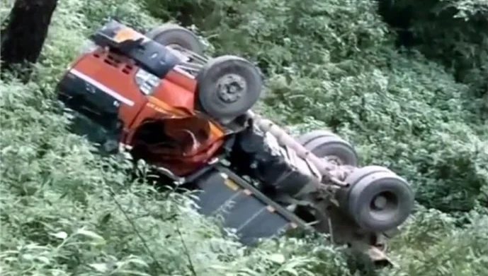 सोलन में टिप्पर का भयानक हादसा, ओवरटेकिंग के दौरान 150 फुट खाई में गिरी गाड़ी