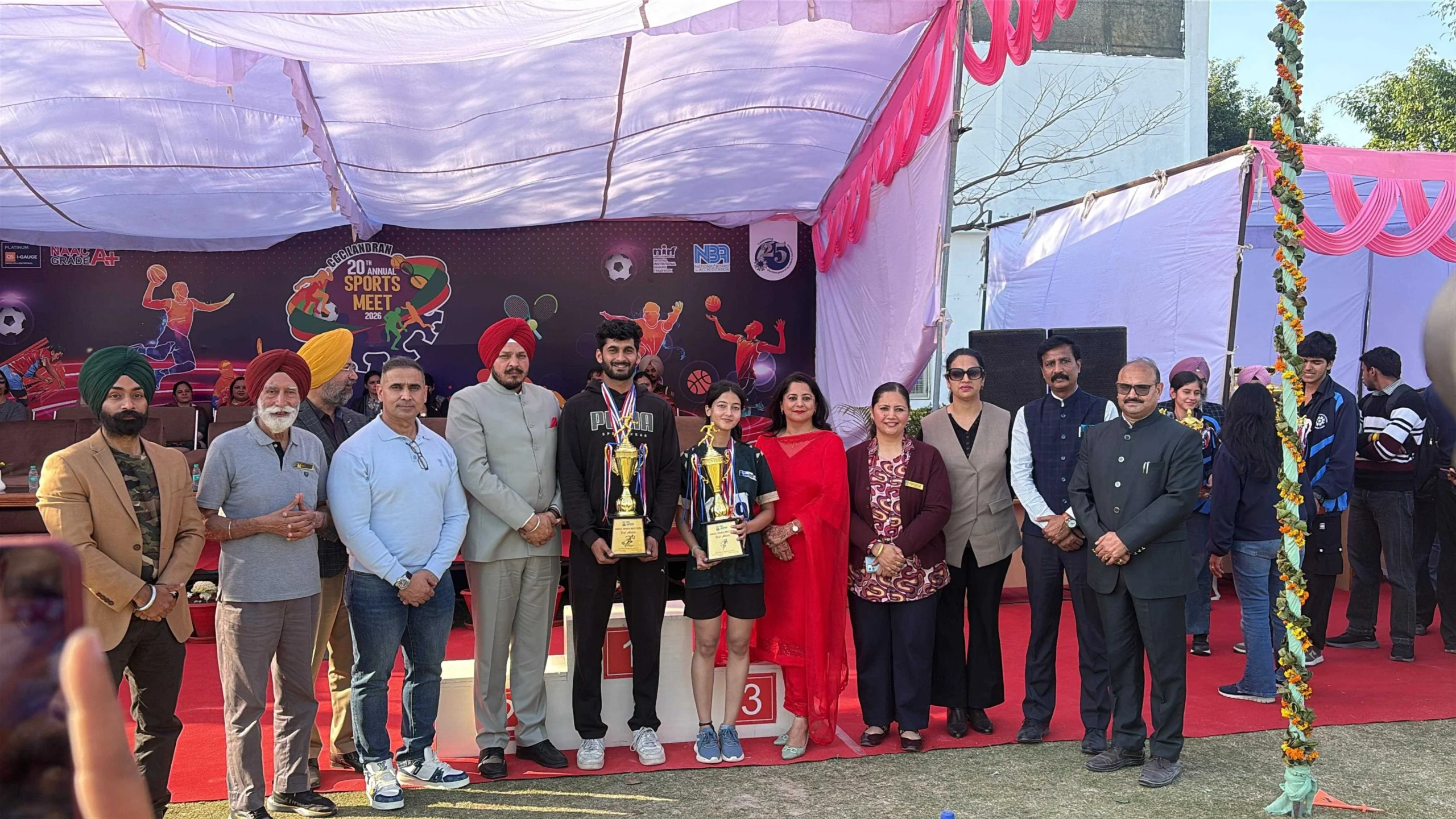 दो दिवसीय इस स्पोर्ट्स मीट की शोभा बढ़ाने सीजीसी लांडरां के प्रेसिडेंट रशपाल सिंह धालीवाल, चीफ गेस्ट शिव सिंह, प्रसिद्ध भारतीय बॉक्सिंग कोच एवं द्रोणाचार्य पुरस्कार से सम्मानित, तथा गेस्ट ऑफ़ ऑनर के रूप में मास्टर तेघबीर सिंह की गरिमामयी उपस्थिति रही। मास्टर तेघबीर सिंह एक मॉउंटेनीर हैं, जो माउंट एल्ब्रुस पर चढ़ाई कर चुके हैं और अगस्त 2024 में माउंट किलिमंजारो पर चढ़ाई करने वाले सबसे कम उम्र के एशियाई बने है।