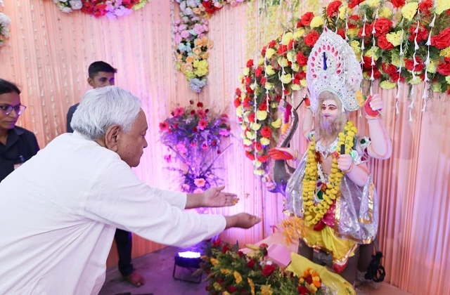 इससे पहले सुबह में, नीतीश कुमार ने अपने आधिकारिक आवास 1 अणे मार्ग में भगवान विश्वकर्मा की प्रतिमा के सामने भी पूजा-अर्चना की। इस दौरान उन्होंने भगवान विश्वकर्मा से बिहार के लोगों के लिए सुख, शांति और समृद्धि की प्रार्थना की।