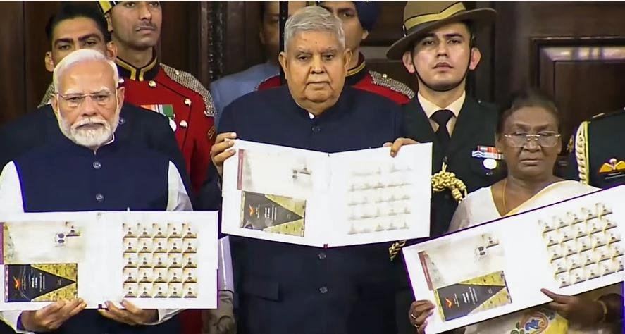 नई दिल्ली, 26 नवंबर : संविधान दिवस पर संसद के दोनों सदनों की संयुक्त बैठक को संबोधित करते हुए मुर्मू ने कहा कि संविधान एक जीवंत और प्रगतिशील दस्तावेज है। राष्ट्रपति ने कहा, हमारा संविधान एक जीवंत और प्रगतिशील दस्तावेज है। अपने संविधान के माध्यम से हमने सामाजिक न्याय और समावेशी विकास के लक्ष्यों को प्राप्त किया है। बता दे ं कि राष्ट्रपति द्रौपदी मुर्मू ने मंगलवार को संसद के संविधान सदन में संविधान दिवस समारोह के अवसर पर भारत के संविधान को अपनाने की 75वीं वर्षगांठ के अवसर पर एक स्मारक सिक्का और टिकट जारी किया। इस अवसर पर राष्ट्रपति मुर्मू ने भारतीय संविधान से संबंधित दो पुस्तकों का भी विमोचन किया। लोकसभा अध्यक्ष ओम बिरला ने संविधान दिवस मना रहे करोड़ों भारतीयों को बधाई दी है।