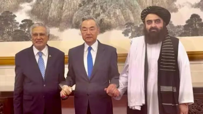 पाकिस्तान के विदेश मंत्री इशाक डार ने सोशल मीडिया पोस्ट में चीन और अफगानिस्तान के विदेश मंत्रियों के साथ बैठक की अपनी पहली तस्वीर साझा करते हुए लिखा, “पाकिस्तान, चीन और अफगानिस्तान क्षेत्रीय शांति, स्थिरता और विकास के लिए एक साथ खड़े हैं।”