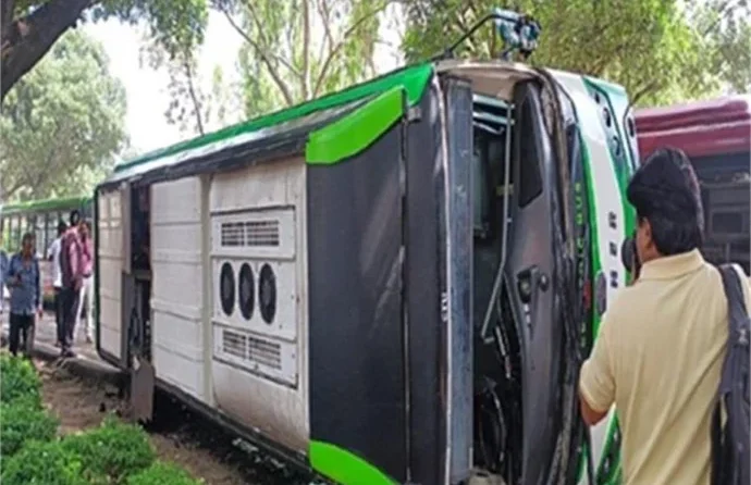 चंडीगढ़, 05 सितंबर 2025: चंडीगढ़ के सेक्टर-17 परेड ग्राउंड के पास गुरुवार को एक बड़ा हादसा हो गया है। चंडीगढ़ ट्रांसपोर्ट अंडरटेकिंग (सीटीयू) की रूट नंबर 28 की बस तेज रफ्तार के कारण असंतुलित होकर साइकिल ट्रैक पर पलट गई। इस सीटीयू बस में करीब 20 यात्री सवार थे, जो मनीमाजरा से सेक्टर-17 बस अड्डे की ओर जा रही थी।