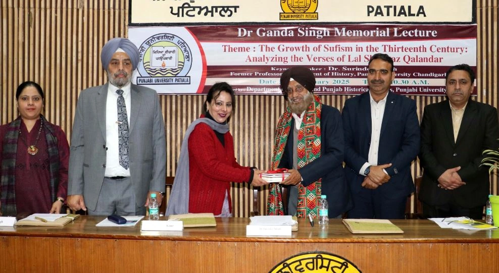 पटियाला, 3 फरवरी : प्रसिद्ध इतिहासकार डा. सुरिन्दर सिंह ने कहा कि सूफी काव्य ने मनुष्य में उच्च नैतिक मूल्य पैदा करने के लिए महत्वपूर्ण योगदान दिया है। वह पंजाबी यूनिवर्सिटी के इतिहास और पंजाब इतिहास अध्ययन विभाग की तरफ से करवाए गए डा. गंडा सिंह यादगारी भाषण के दौरान अपने विचार प्रकट कर रहे थे। यूनिवर्सिटी के सैनेट हाल में हुए इस भाषण दौरान बोलते उन्होंने 13वीं सदी में लाल शाहबाज कलंदर की रचनाओं के आधार पर सूफीवाद के विकास बारे विस्तार में बात की। उन्होंने अपने भाषण में इस बात पर जोर दिया कि सूफ़ी काव्य में मानवीय नैतिक मूल्यों को हमेशा ही उचाया गया है। प्रोफैसर सुरिन्दर सिंह ने अपने भाषण में 13वीं सदी के जटिल आध्यात्मिक दृश्य की आलोचना की, जिस में खास तौर पर पंजाबी रहस्यवाद में एक महत्वपूर्ण और प्रभावशाली शख्सियत लाल शाह बाज कलंदर के गहरे योगदान पर ध्यान केंद्रित किया गया। उल्लेखनीय है कि लाल शाहबाज कलंदर, जोकि शेख फरीद के समकाली थे, मुख्य तौर पर मुलतान के क्षेत्र में रहते थे, जोकि सभ्याचारक और अध्यात्मक आदान प्रदान का एक एतिहासिक केंद्र था। डॉ. सिंह ने बताया कि अपने जीवन दौरान, उनको कुल 42 गजलों की रचना की। उन्होंने बताया कि लाल शाहबाज कलंदर की गजलों का सभी परमात्मा की असली अस्तीत्व के केंद्रीय विषय के पास घूमता है। प्रोफैसर सुरिन्दर सिंह ने लाल शाहबाज कलंदर द्वारा अपनी रचनाओं में, खास कर कुरान की व्याख्या में अपनाई गई सूक्ष्म पहुंच पर जोर दिया।