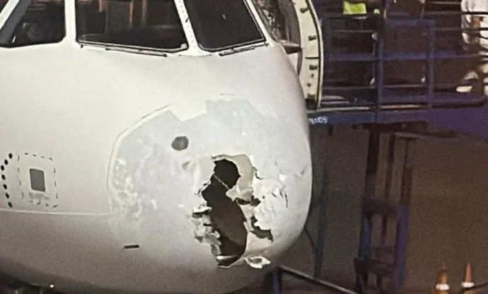 श्रीनगर, 22 मई 2025: दिल्ली से श्रीनगर जा रही इंडिगो की फ्लाइट के साथ एक बड़ा हादसा टल गया। फ्लाइट नंबर 6E2142 को खराब मौसम का सामना करना पड़ा। जब विमान उडी उसके बाद बारिश के साथ बर्फबारी और ओले गिरने लगे। विमानों पर बिजली गिरने की भी बात सामने आई है। जिससे फ्लाइट का आगे का हिस्सा टूट गया।
