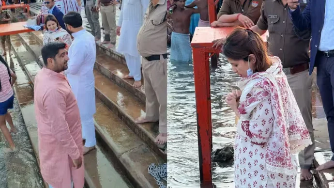 हरिद्वार, 24 अक्टूबर 2025: भारतीय क्रिकेट के भामाशाह एमएस धोनी की पत्नी साक्षी धोनी ने छठ पूजा से ठीक पहले हरिद्वार में ‘हर की पौड़ी’ पर पहुंचकर गंगा मां का आशीर्वाद लिया। 25 अक्टूबर से शुरू हो रहे चार दिवसीय छठ महोत्सव की तैयारियों के बीच साक्षी ने पूरे विधि-विधान से गंगा स्नान किया और पूजा-अर्चना की। धोनी परिवार के इस सदस्य ने सादगी भरा अंदाज अपनाया। चेहरा ढककर सामान्य भक्तों की तरह दर्शन किए ताकि भीड़ न जुड़े।