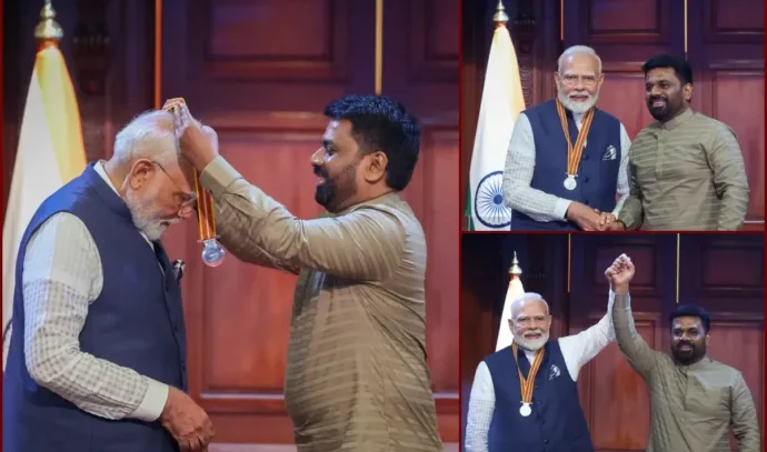 Mitra Vibhushan Award To PM Modi: श्रीलंका के राष्ट्रपति अनुरा कुमारा दिसानायके ने प्रधानमंत्री नरेंद्र मोदी को ‘श्रीलंका मित्र विभूषण’ सम्मान से नवाजा है। इस दौरान उन्होंने कहा कि पीएम मोदी इस सम्मान के पूरी तरह हकदार हैं। राष्ट्रपति ने खुशी जताते हुए घोषणा की कि श्रीलंका सरकार ने उन्हें यह सर्वोच्च सम्मान देने का फैसला किया है, जो किसी विदेशी राष्ट्राध्यक्ष या शासनाध्यक्ष को दिया जाता है। यह सम्मान 2008 में शुरू हुआ था और श्रीलंका की मित्रता को मान्यता देने के लिए प्रतिष्ठित नेताओं को प्रदान किया जाता है।