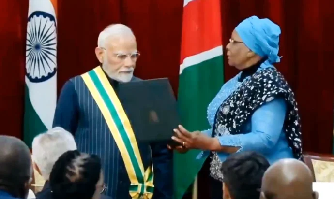 PM Modi Namibia Visit: प्रधानमंत्री नरेंद्र मोदी को 9 जुलाई 2025 को नामीबिया के सर्वोच्च नागरिक सम्मान ‘ऑर्डर ऑफ द मोस्ट एंशिएंट वेल्वित्चिया मिराबिलिस’ से सम्मानित किया गया। यह सम्मान उन्हें नामीबिया की राजधानी विंडहोक में राष्ट्रपति डॉ. नेटुम्बो नंदी-नदैतवाह ने एक औपचारिक समारोह में प्रदान किया। यह पुरस्कार 1995 में स्थापित किया गया था और यह नामीबिया के प्रतीकात्मक रेगिस्तानी पौधे वेल्वित्चिया मिराबिलिस के नाम पर है, जो देश के लोगों की सहनशक्ति, दीर्घायु और दृढ़ता का प्रतीक है।