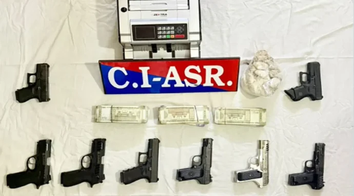 पुलिस ने बताया कि गिरफ्तार तस्करों के पास से 8 हथियार जब्त किए गए हैं, जिनमें ग्लॉक पिस्टल और चीनी हथियार शामिल हैं। इसके साथ ही 1 किलो हेरोइन, 2.9 लाख रुपये की ड्रग मनी और एक नोट गिनने की मशीन भी बरामद की गई है।
