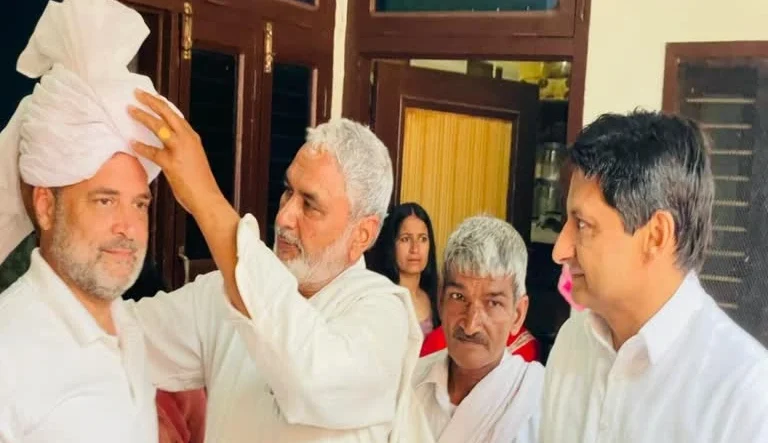राहुल का हरियाणवी पगड़ी पहनाकर जोरदार स्वागत किया गया। जब वे शादी वाले घर में प्रवेश करने लगे तो दरवाजे पर खड़े युवकों ने जोर से कहा- राहुल भाई राम-राम। राहुल ने हाथ जोड़कर मुस्कुराते हुए राम-राम का जवाब दिया और अंदर चले गए।