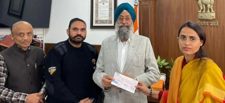 मणकु एग्रोटैक समाना के एम.डी. सुखविन्दर सिंह मणकु ने रेड क्रास सोसायटी को विजन केयर के लिए 3.52 लाख रुपए का चैक डिप्टी कमिश्नर को सौंपा