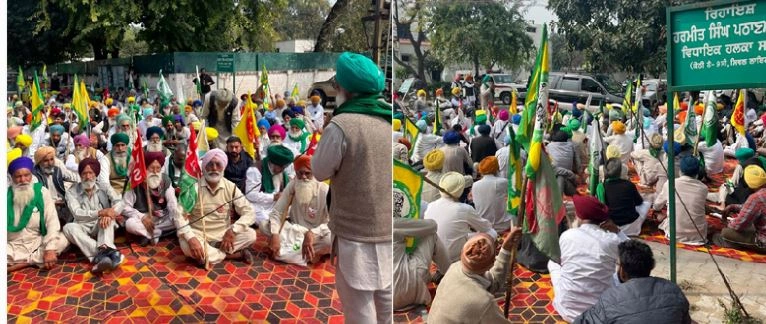 किसानों ने हलका सनौर के विधायक हरमीत सिंह पठानमाजरा विधायक सनौर की रिहायश के आगे धरना दिया। एकत्रित हुए बड़ी संख्या में किसान पुरुष और अन्य के धरने की अगुवाई दविन्दर पूनिया, दर्शन बेलुमाजरा, अवतार कौरजीवाला, सुखविन्दर सिंह बारन, नरिन्दर सिंह लैहला, बूटा सिंह शादीपुर, गुरबचन सिंह कनसूहा, जसवीर सिंह राजू खेड़ी और जय राम भानरा ने की। हरमीत सिंह पठानमाजरा की कोठी के आगे दिए विशाल धरने को अलग- अलग जत्थेबंदियों के साथ संबंधित नेताओं बलराज जोशी, गुरचरन सिंह, नरिन्दर सिंह लेहलां, जय राम भानरा, सुखविन्दर सिंह लाली, जरनैल सिंह पंजौला, राज किशन नूरखेडिय़ां, हरदयाल सिंह भानरा, सुरिन्दर सिंह खालसा, जसवीर सिंह, हरमनदीप ङ्क्षसह, सुखमिंदर ङ्क्षसह, रमिंदर ङ्क्षसह पटियाला ने संबोधन करते कहा कि किसानों के गुस्से का खामियाजा पंजाब सरकार को जहां विभिन्न समय पर अब पंजाब के गांवों व शहरों में भुगतना पड़ेगा, वहंा आगामी चुनावों में भी लोग रोष का टकराव करना पड़ेगा।