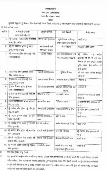 पंजाब सिविल सचिवालय में उप सचिव और अवर सचिवों का स्थानांतरण
