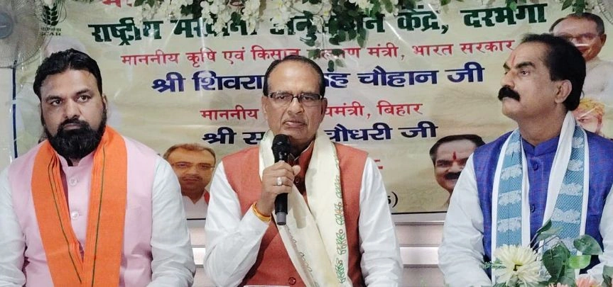 दरभंगा में राष्ट्रीय अनुसंधान केंद्र पर मखाना किसान संवाद कार्यक्रम में शामिल हुए केंद्रीय मंत्री शिवराज सिंह चौहान