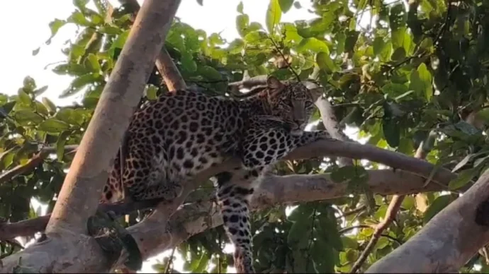 तेंदुए की अचानक मौजूदगी से पुरे इलाके में दहशत का माहौल है। मिली जानकारी के अनुसार ठाना गाँव निवासी नानक चंद ने सबसे पहले तेंदुए को पेड़ पर बैठे देखा। उन्होंने तुरंत उसकी वीडियो बनाई। उन्होंने इसकी जानकारी पंचायत प्रधान मनीष शर्मा को दी। पंचायत प्रधान ने मामले की गंभीरता से लेते हुए तुरंत वन विभाग भराड़ी को सूचित किया। सूचना मिलते ही वन विभाग की टीम मौके पर पहुँची, लेकिन तब तक तेंदुआ पेड़ से नीचे उतरकर जंगल की ओर भाग गया था।
