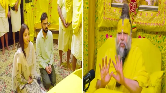 Virat Kohli in Vrindavan: टेस्ट क्रिकेट से संन्यास लेने के बाद भारतीय क्रिकेटर विराट कोहली अपनी पत्नी और अभिनेत्री अनुष्का शर्मा के साथ मंगलवार सुबह वृंदावन पहुंचे। वहां उन्होंने श्रीराधे हित केली कुंज आश्रम में संत प्रेमानंद महाराज से मुलाकात की, उनका आशीर्वाद लिया और आध्यात्मिक चर्चा में हिस्सा लिया। संन्यास के बाद यह उनकी पहली सार्वजनिक उपस्थिति थी, जो उनकी आध्यात्मिक शांति की खोज को दर्शाती है।