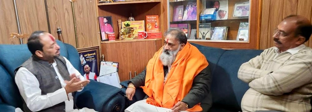 शिव सेना हिंदुस्तान के राष्ट्रीय अध्यक्ष पवन गुप्ता के निवास पर विश्व हिन्दू तख़्त व एंटी टेररिस्ट फ्रंट इंडिया प्रमुख वीरेश शांडिल्य का जोरदार स्वागत